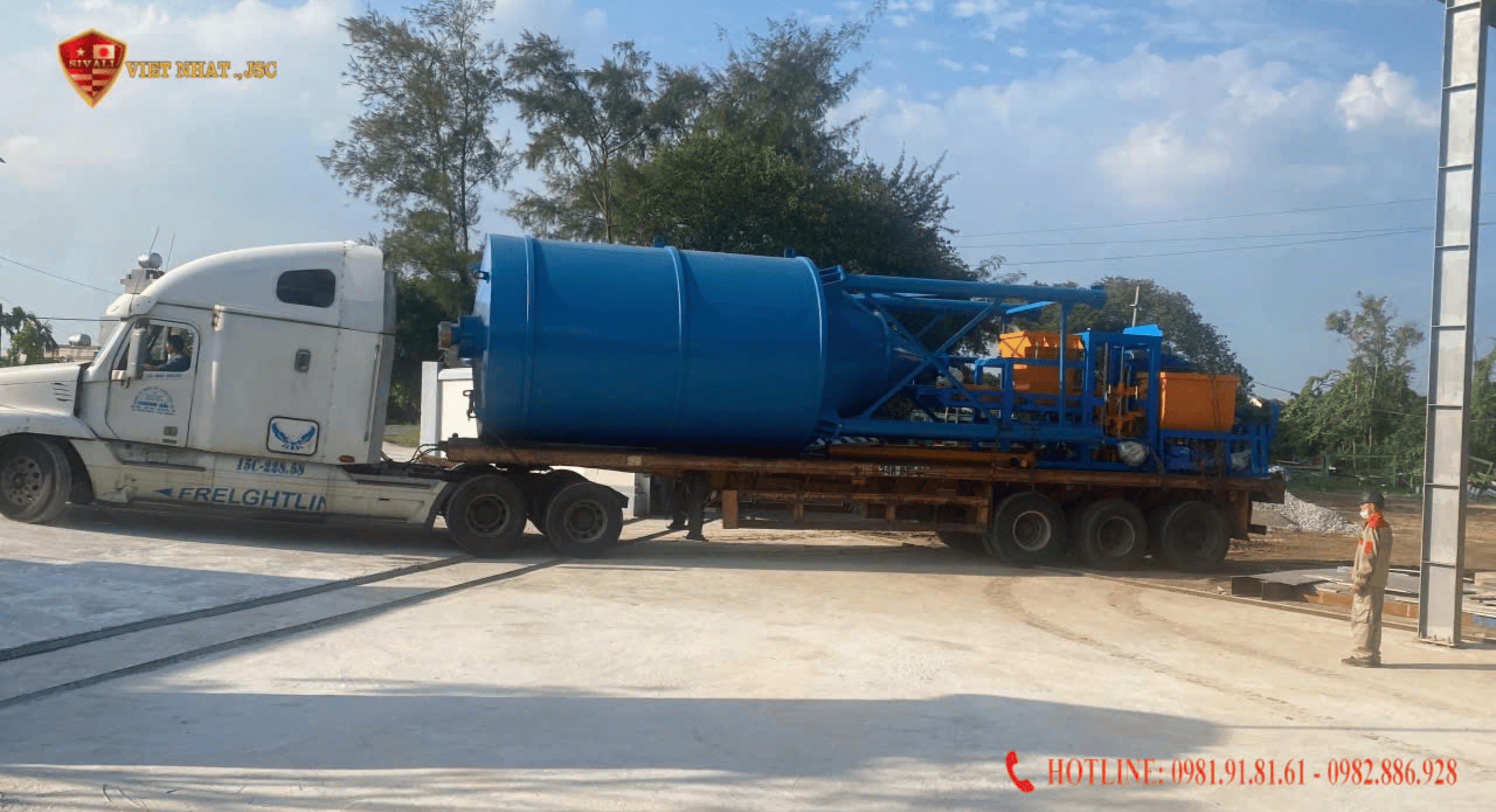 Silo xi măng Việt Nhật đang trên đường vận chuyển, đảm bảo chất lượng và tiến độ bàn giao cho khách hàng.
